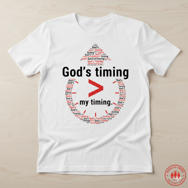 Wear your faith boldly with this “God’s Timing > My Timing” T-shirt — a simple yet powerful reminder that divine timing never fails. Designed for comfort and inspiration, this shirt blends style with a message that speaks straight to the heart.
